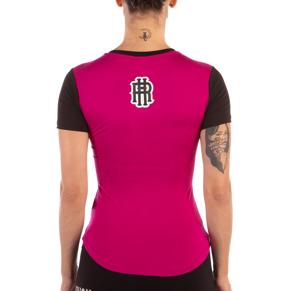 Couleur : NOIR MAGENTA Impression recto et verso Impression à base d'eau Lavage en machine à l'envers à l'eau froide 96% Viscose / 4% Élasthanne Notre mannequin porte une taille US XS et mesure 167 cm / 5'7"